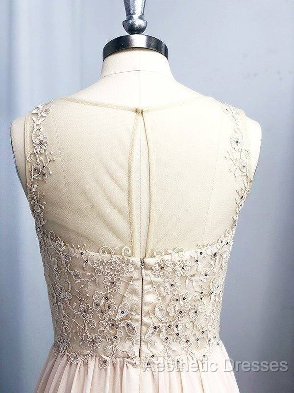 A-Line/Princess Scoop Applique Sleeveless Chiffon Floor-Length Dresses