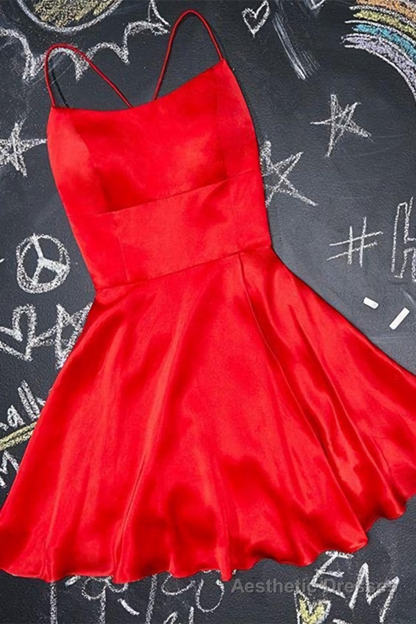 A-Line Short red Homecoming Dress Satin Party Dress