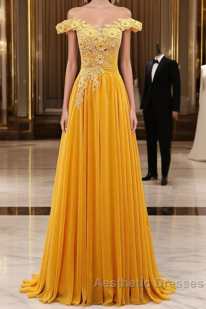 A-Line Wedding Guest Dresses Floral Dresses Evening Prom Wedding Party Sweep / Brush Train Sleeveless Off Shoulder Chiffon With Appliques