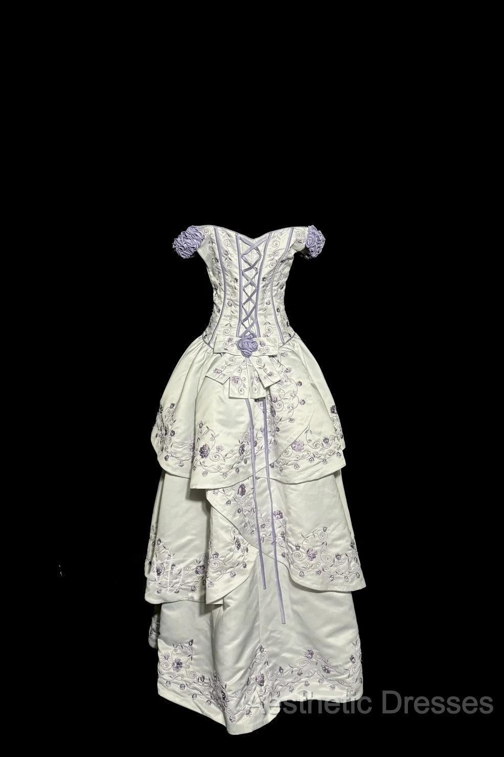 Aesthetic Ball Gown Off The Shoulder White Evening Prom Dresses Ruffle Long Party Dresses