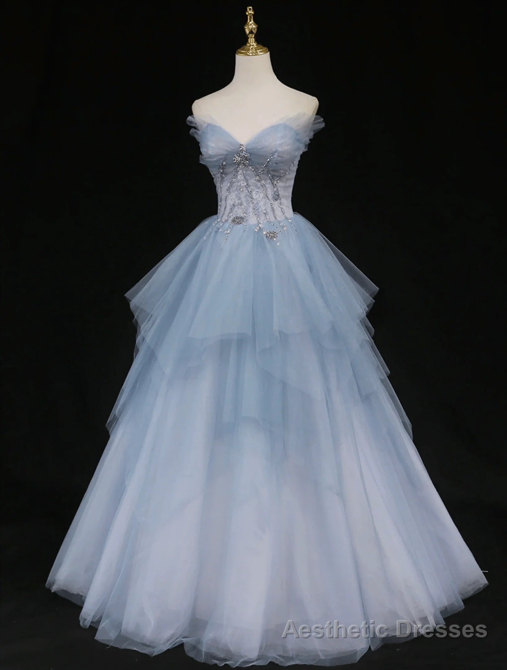 Blue Beaded Sweetheart Long Evening Dress Blue Prom Dress prom dresses shops