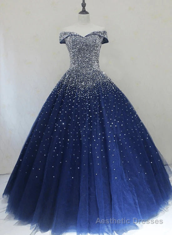 Blue Sequins Ball Gown Off Shoulder Party Dress Blue Sweet 16 Gown prom dresses shops