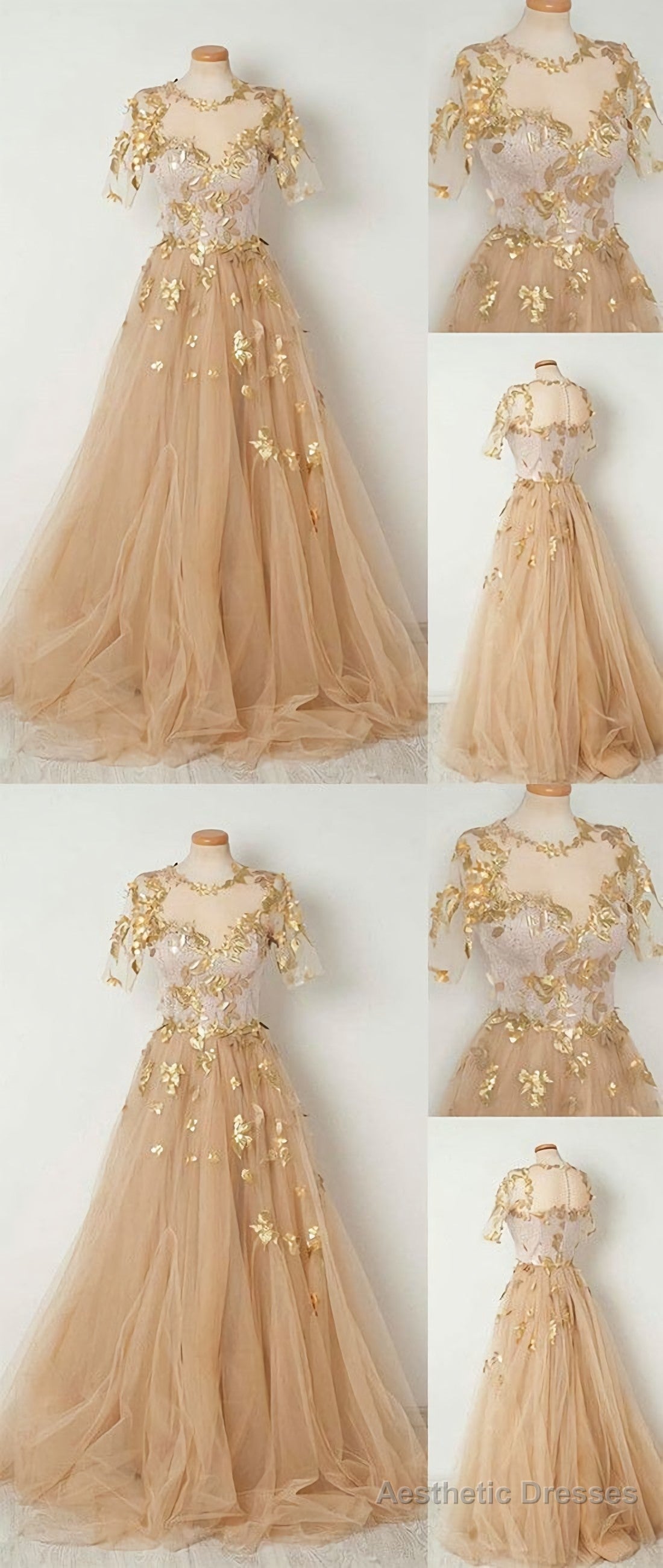 Champagne Tulle Long Prom Dress, Evening Dresses