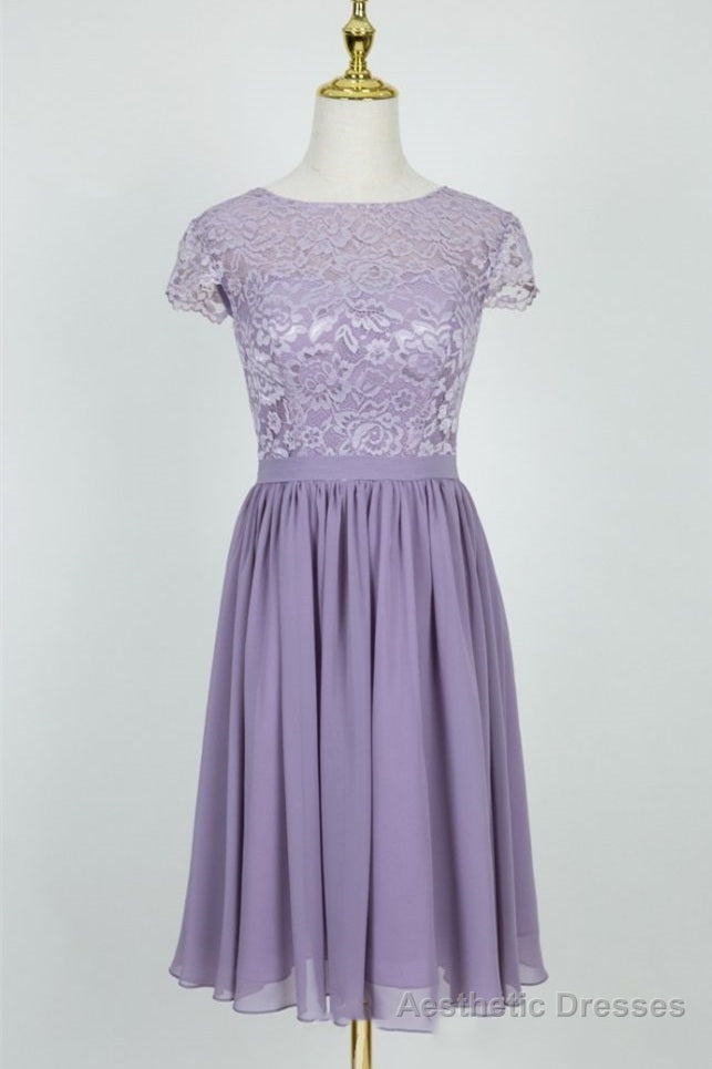 Cute Lace Crew Neck Lilac Bridesmaid Dress