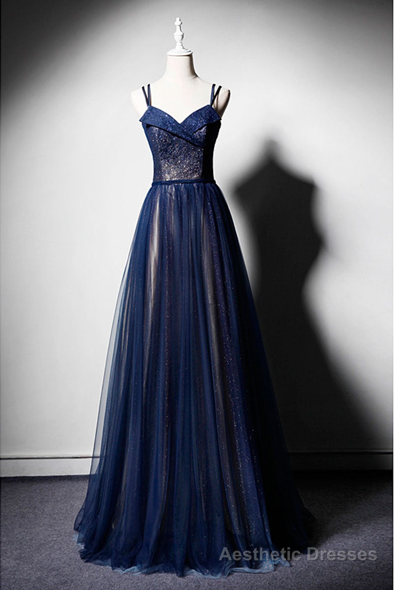 Dark Blue Tulle Long Prom Dress, Dark Blue Evening Dress