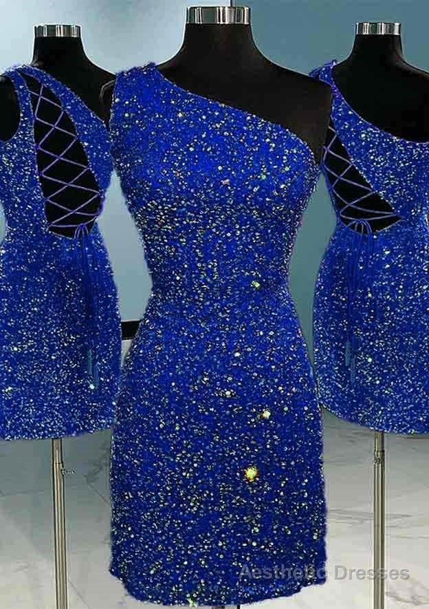 Dazzling One-Shoulder Short Velvet Sequins Homecoming Dress