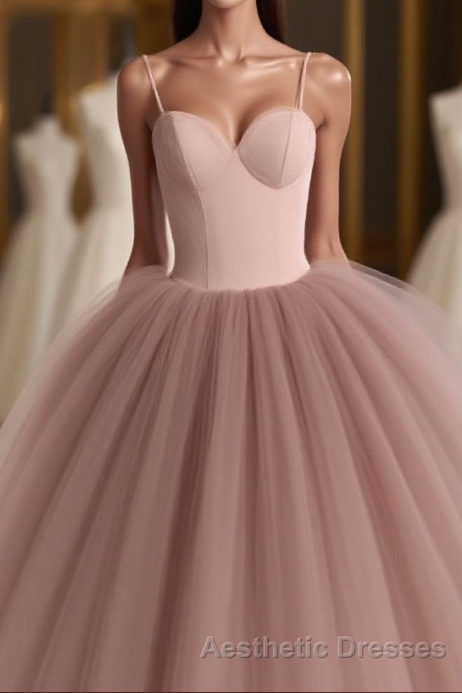 Dusty Rose A-Line Tulle Floor Length Spaghetti Straps Sweetheart Evening Prom Party Dresses Evening Prom Dresses
