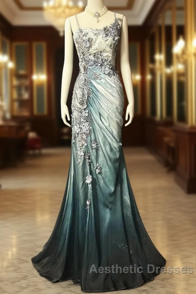 Elegant Chiffon Mermaid Gown For Evening Prom&Party Spaghetti Strap Sequined Applique Evening Gown