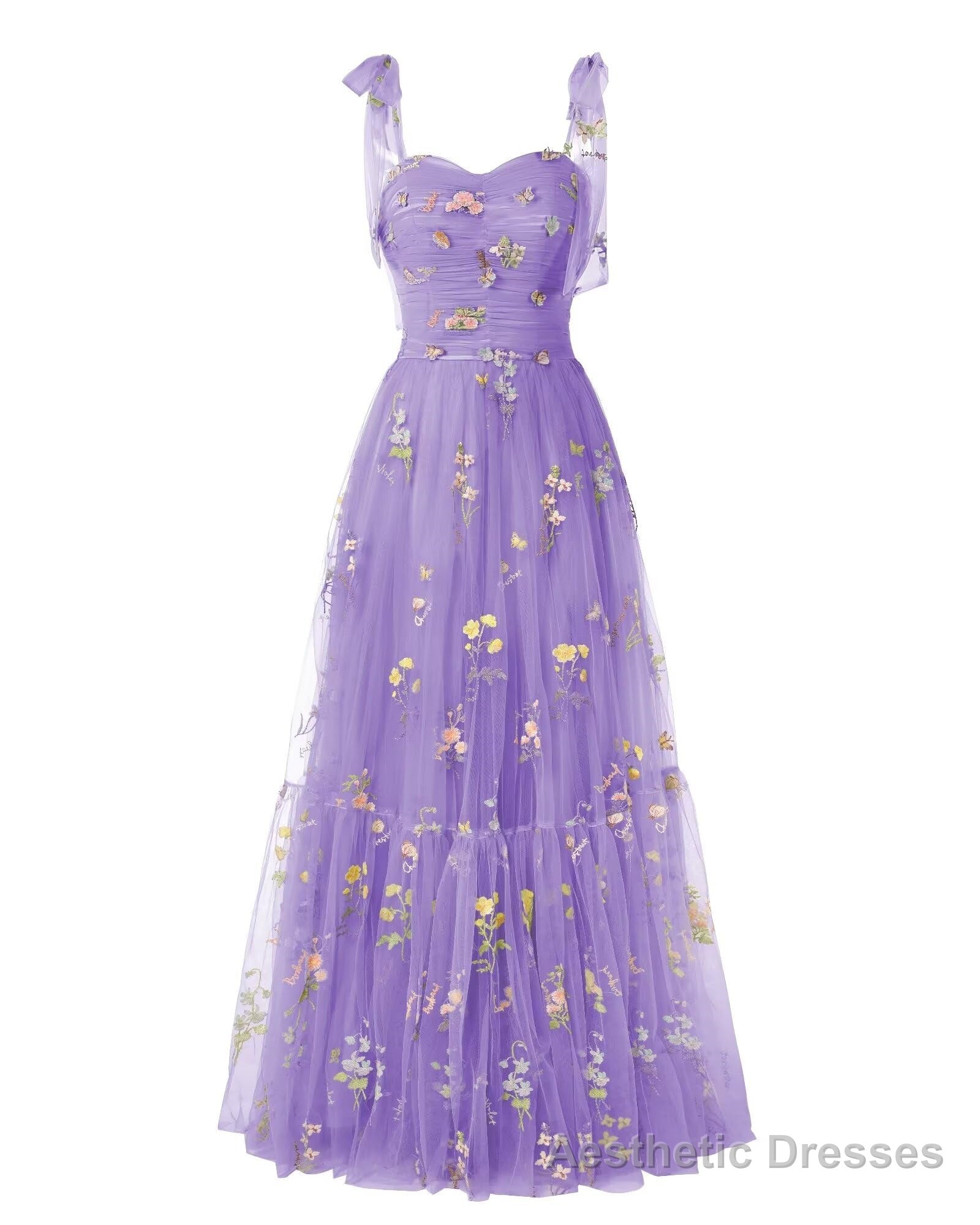 Elegant Embroidery LavenderProm Dresses Sweetheart Spaghetti Straps A Line Party Dress Long Simple Formal Dress