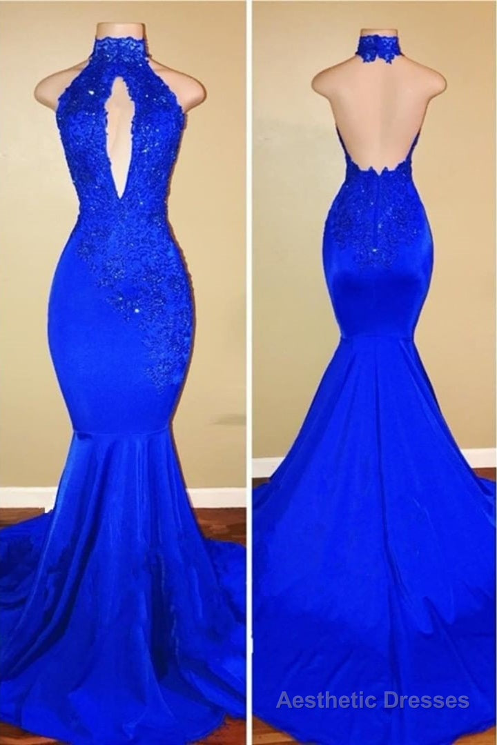 Elegant Mermaid High Neck Royal Blue Long Prom Dress