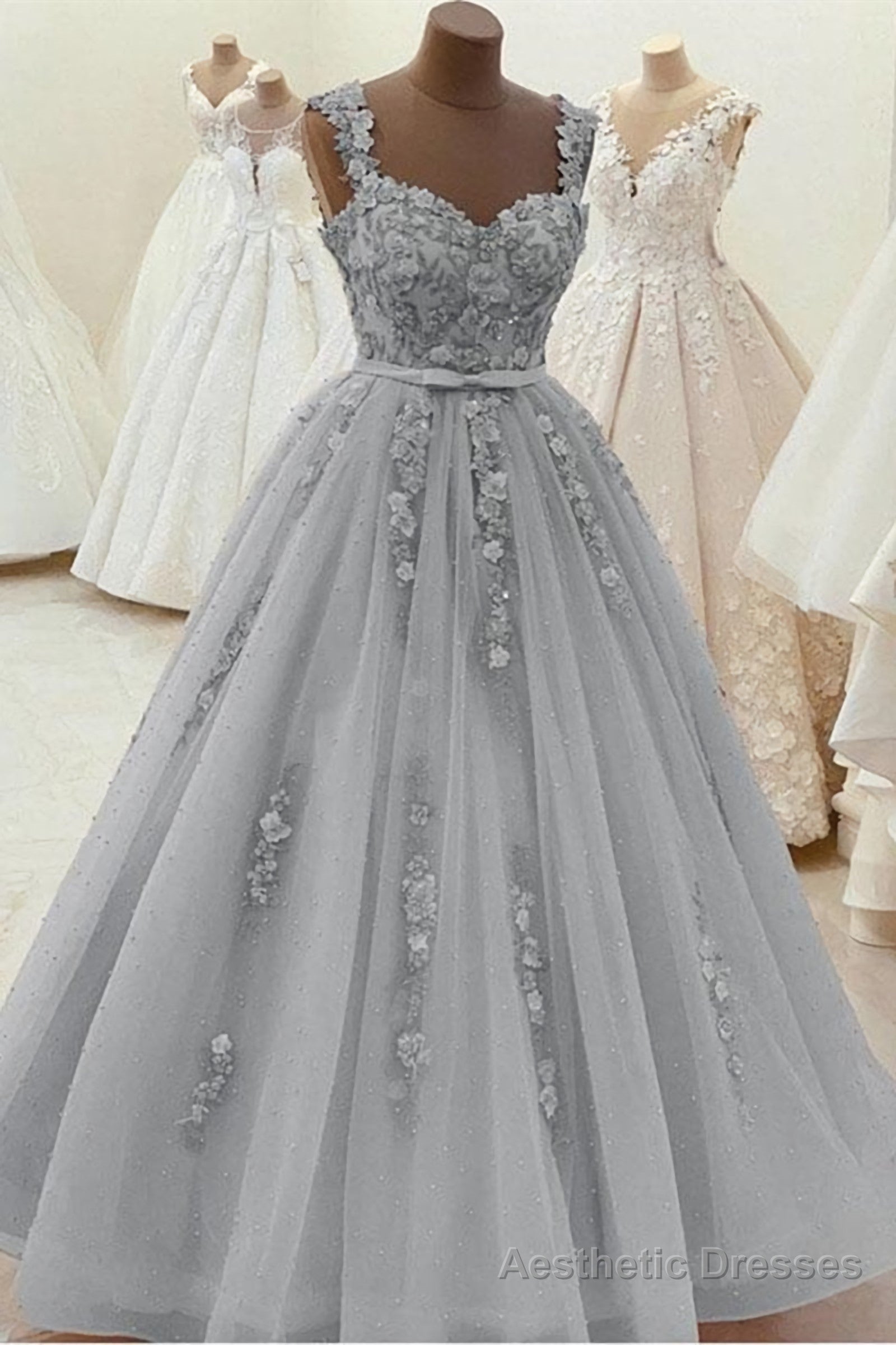 Gorgeous Sweetheart Neck Beaded Gray Floral Lace Grey Floral Lace Gray Prom Dresses