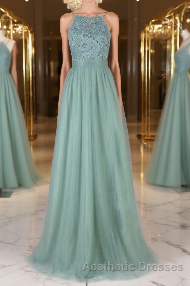Green tulle lace long Evening Prom Dresses green lace evening Dresses