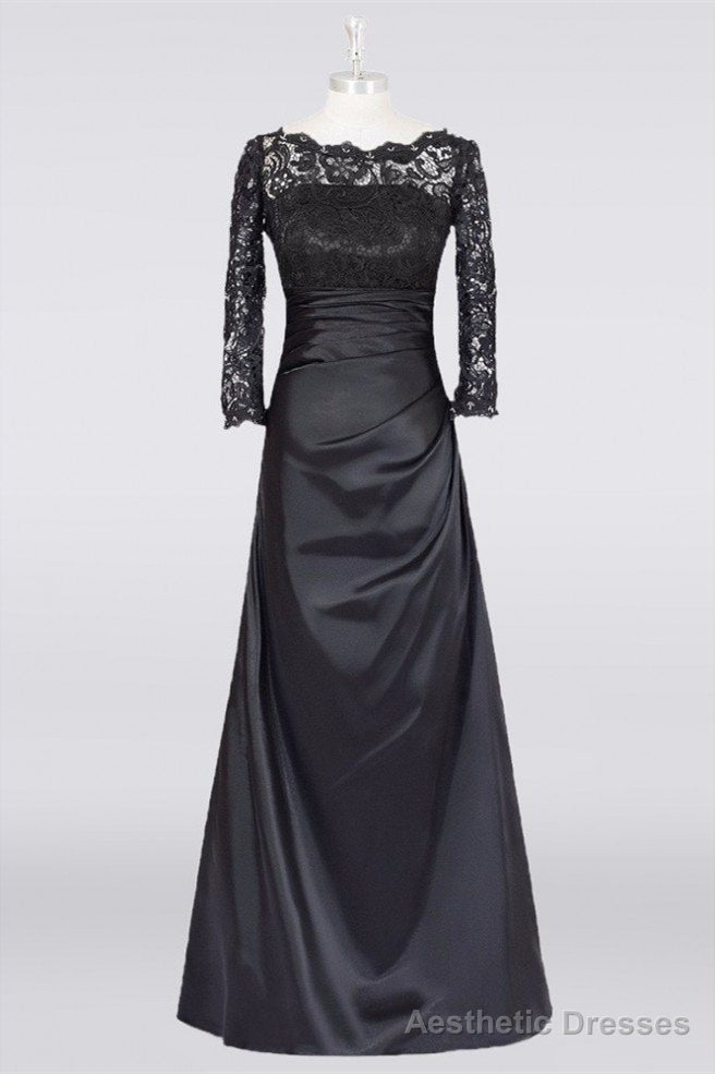 Long Black A Line Mother Of The Bride Dress