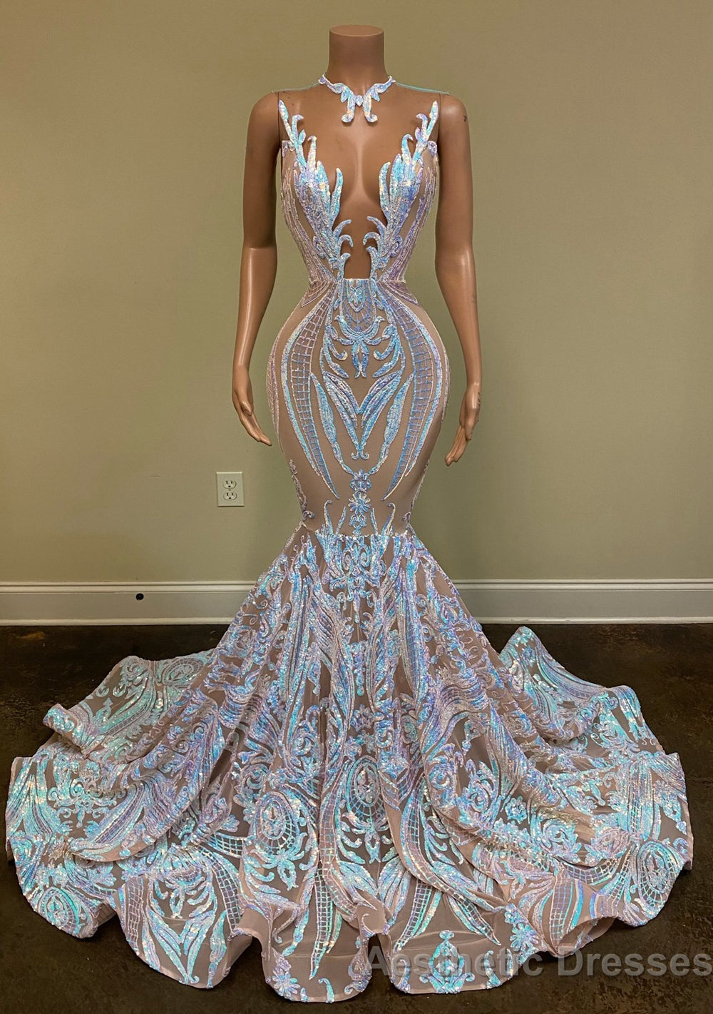 Long Sparkly Prom Dresses Sheer O-neck Sleeveless Real Picture African Black Girls Mermaid Prom Gowns