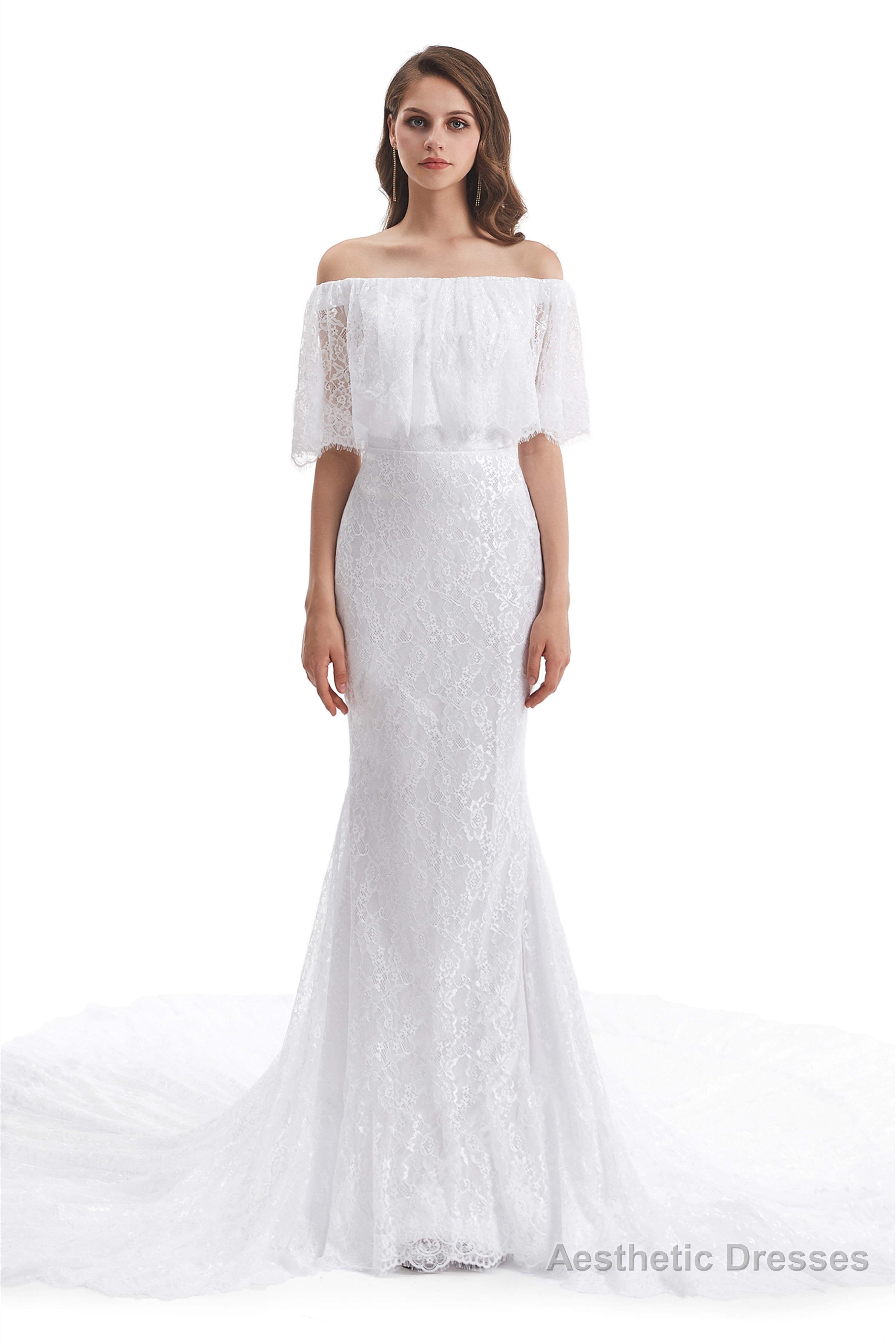 Mermaid Lace Off the Shoulder Wedding Dresses With Train