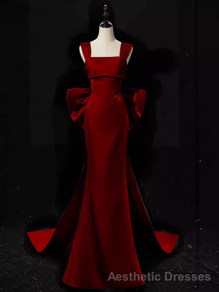 Modest Mermaid Straps Long Sleeveless Red Prom Dresses