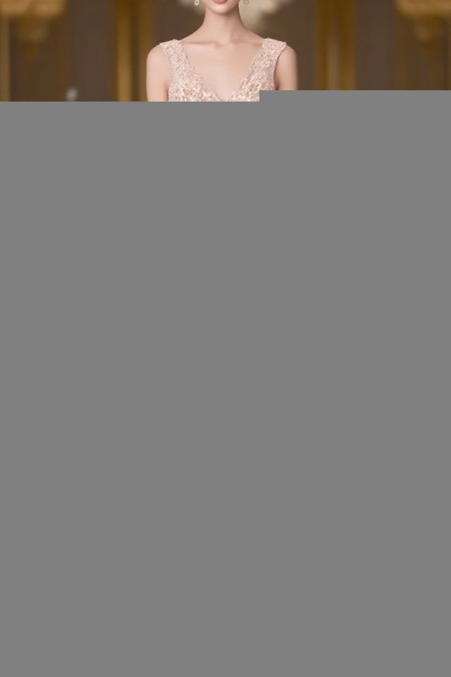 Pink V Neck Lace Long Evening Prom Dresses, Cheap Evening Prom Dresses