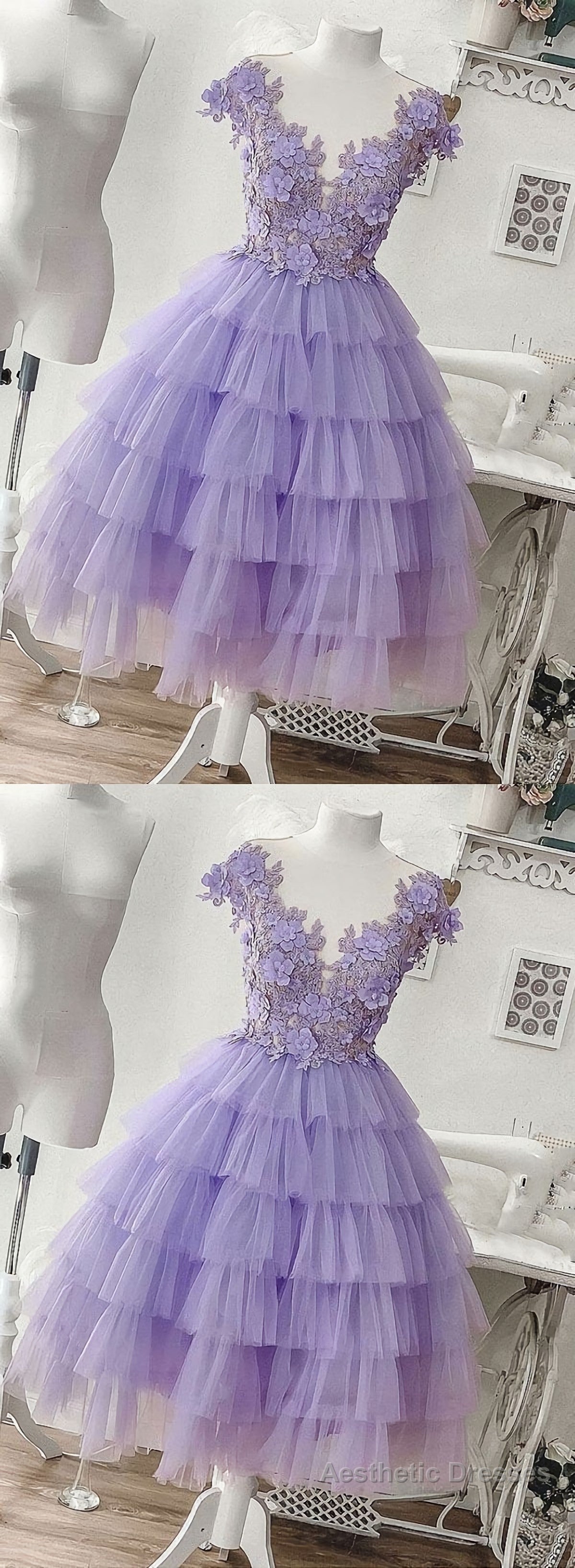 Purple Tulle Applique Short Homecoming Dress, Homecoming Dress