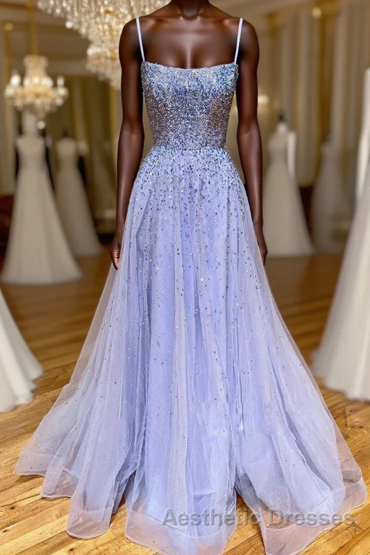 Purple tulle sequin long Evening Prom Dresses tulle formal Dresses