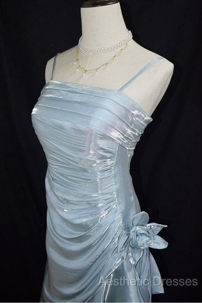 Retro Baby Blue Vintage Floral Dresses Asymmetrical Hem Evening Prom Gown