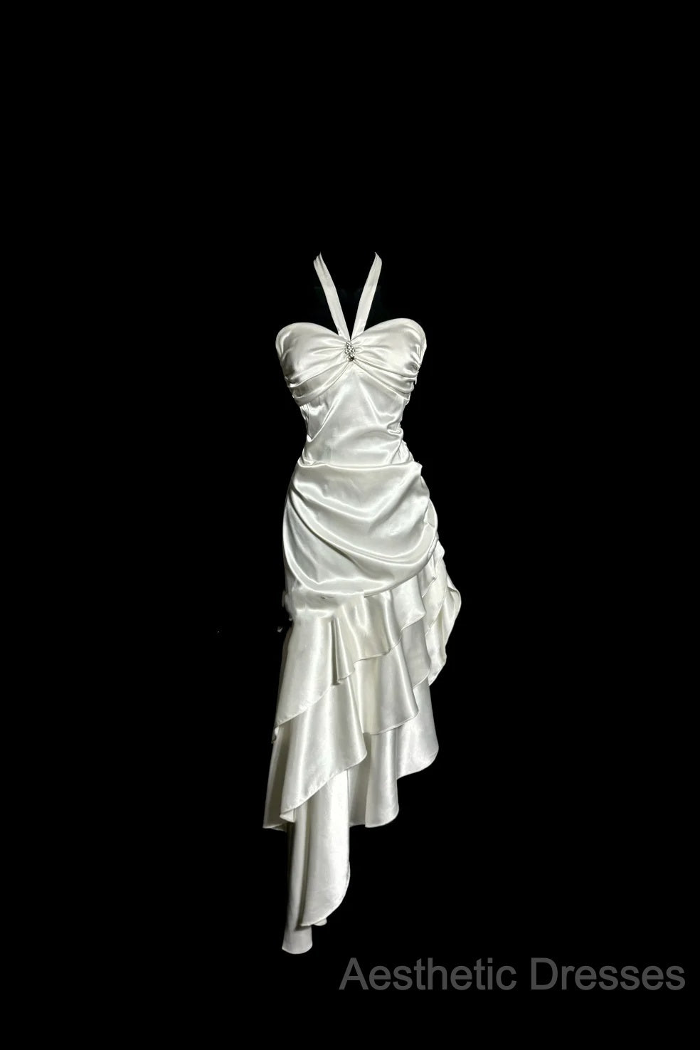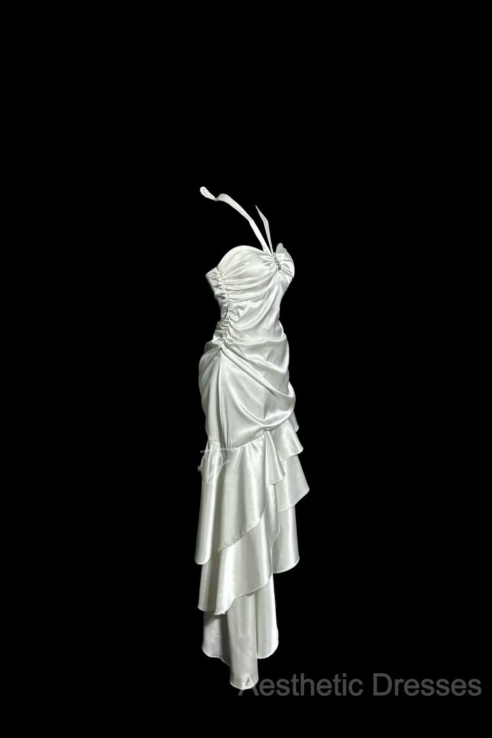 Retro Mermaid Halter Satin High Low Evening Dresses Evening Prom Dresses