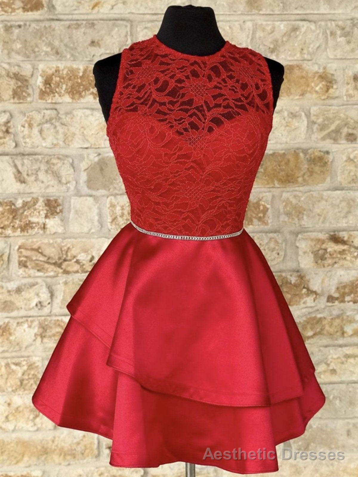 Short Red Lace Prom Dresses, Short Red Lace Formal Homecoming Dresses