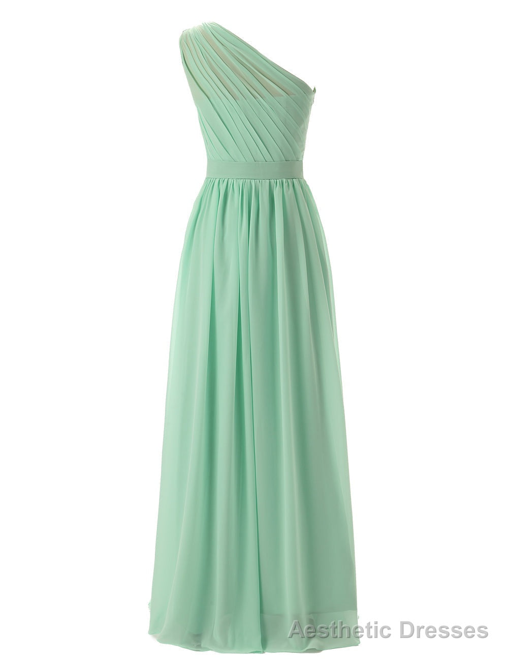 Simple A-Line Chiffon Ruched Mint Green Long Bridesmaid Dress