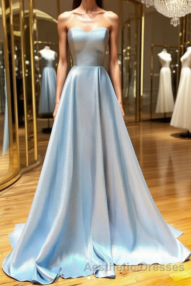 Simple sweetheart blue long Evening Prom Dresses blue long evening Dresses