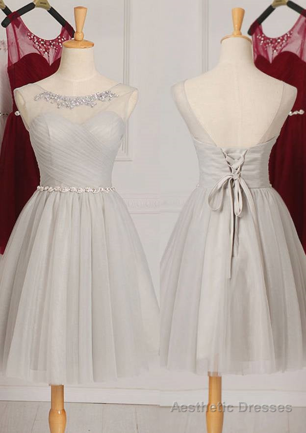 Sleeveless Scoop Neck Knee-Length A-Line/Princess Tulle Bridesmaid Dress With Beaded