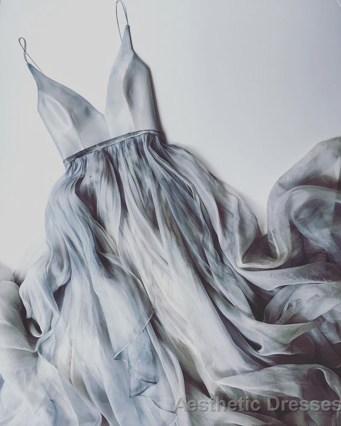 Spaghetti Straps V Neck Long Senior Women Prom Dresses