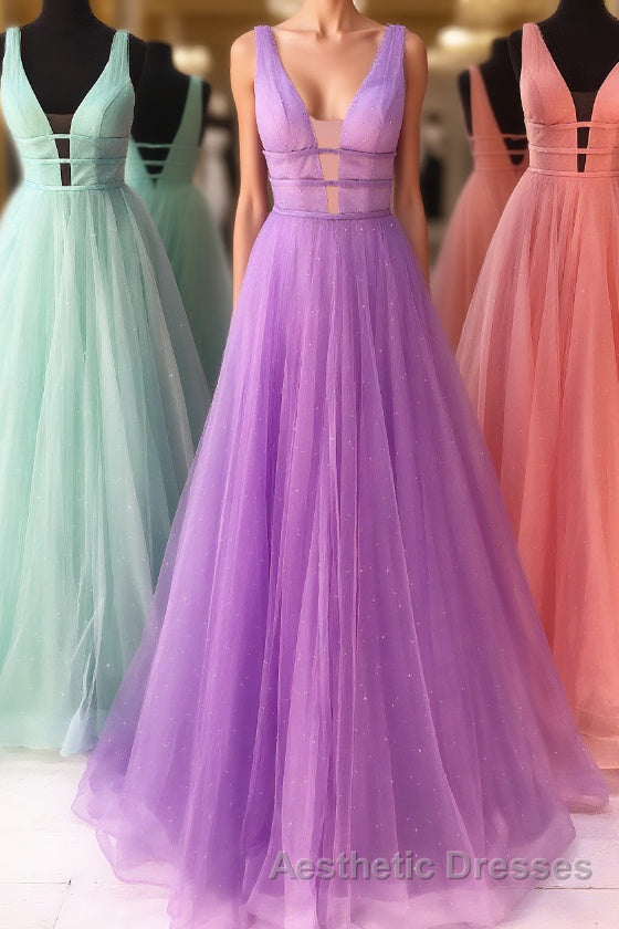 Sparkly A Line V Neck and V Back Evening Prom Dresses with Thin Belt, Formal Graduation Evening Dresses