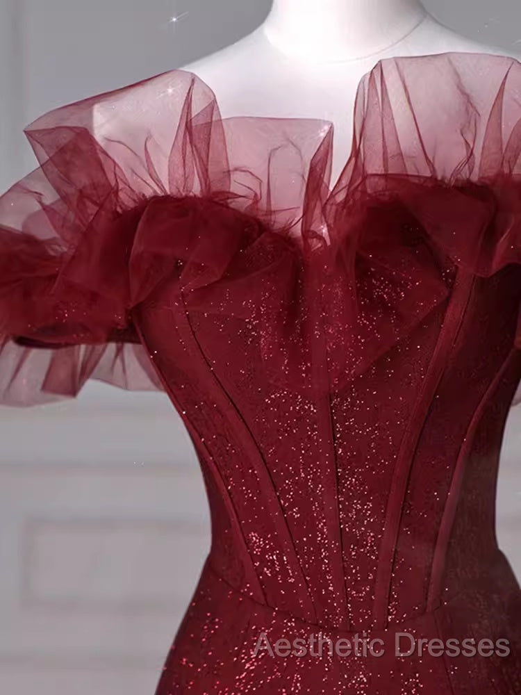 Sparkly Mermaid Burgundy Sequin Long Evening Prom Dresses Party Dresses