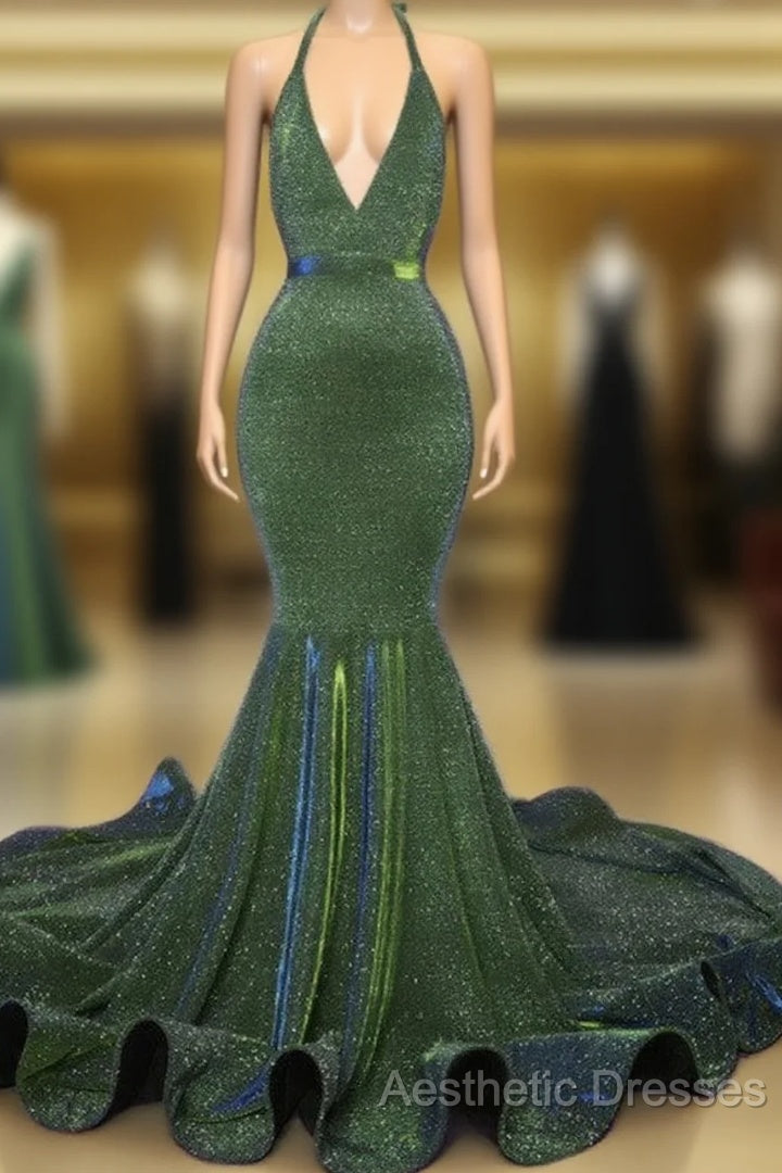 Sparkly Mermaid Halter Ruffles Evening Prom Dresses