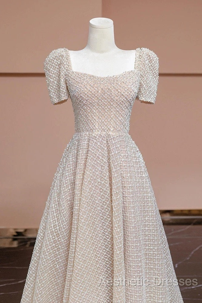 Unique Ball Gown Strapless Short Sleeves Long Wedding Dresses