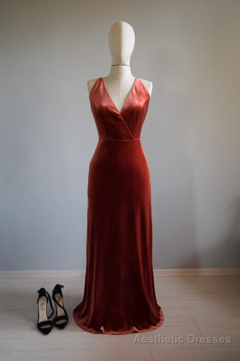 V-Neck Sleeveless Velvet Long Bridesmaid Dress
