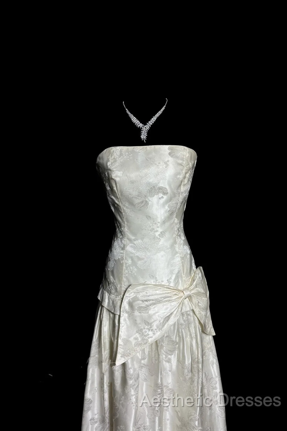 Vintage A Line Strapless White Lace Evening Prom Gown Fairy Evening Prom Dresses