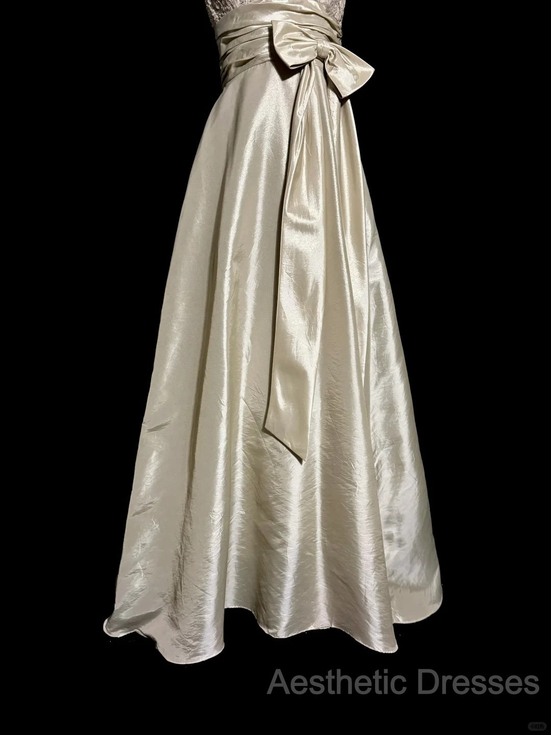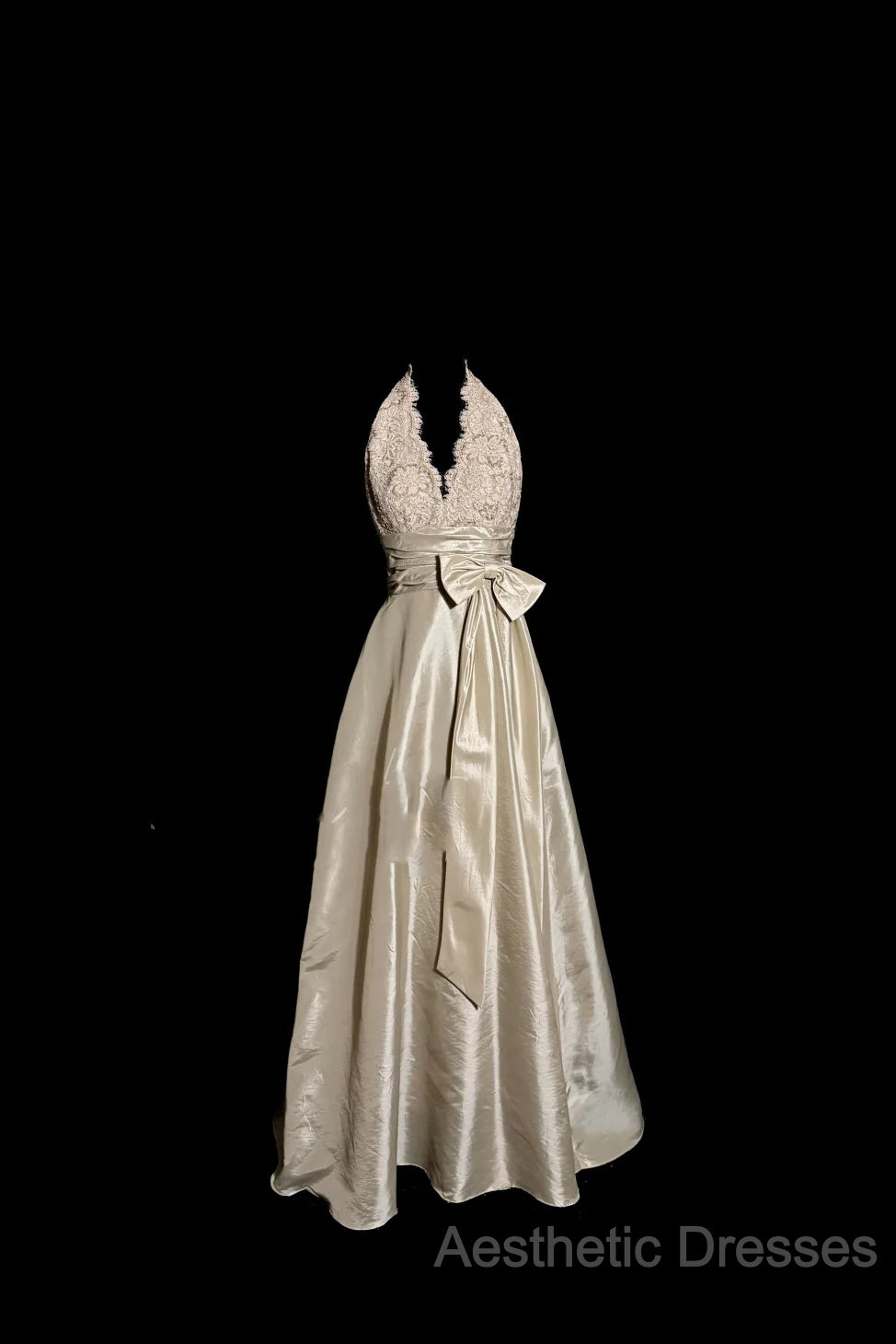 Vintage A Line V Neckline Champagne Lace Evening Prom Gown Fairy Evening Prom Dresses