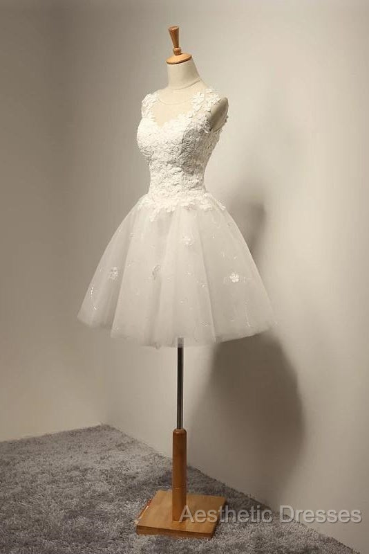 Vintage Cap Sleeves Short Tulle Lace Appliques Wedding Dresses