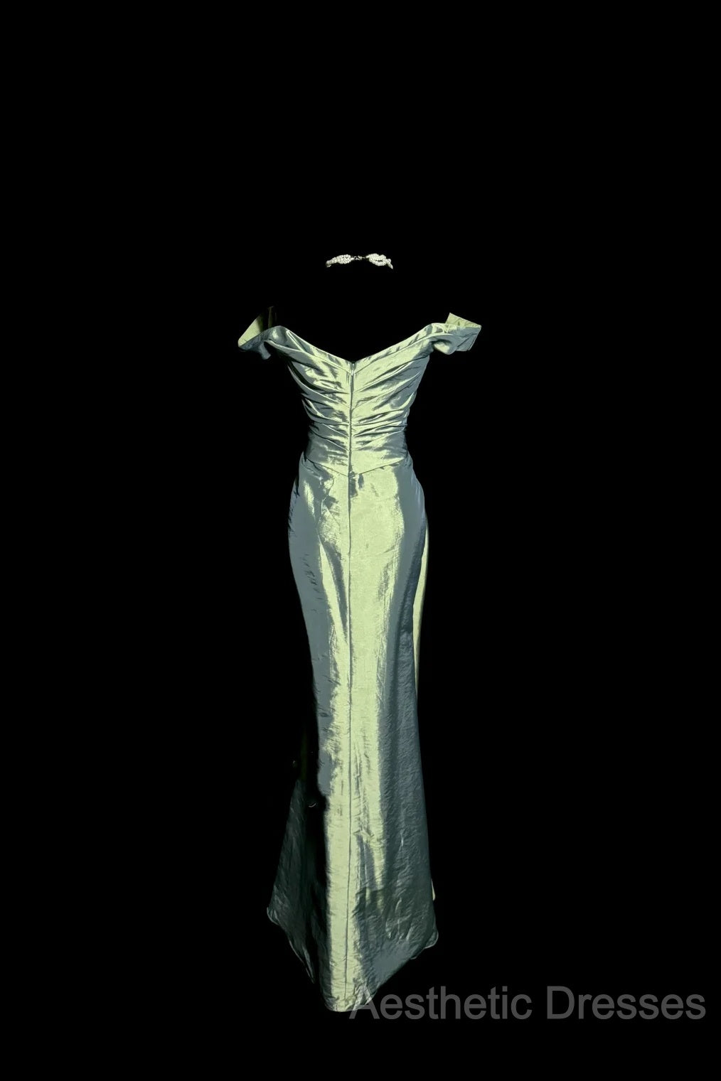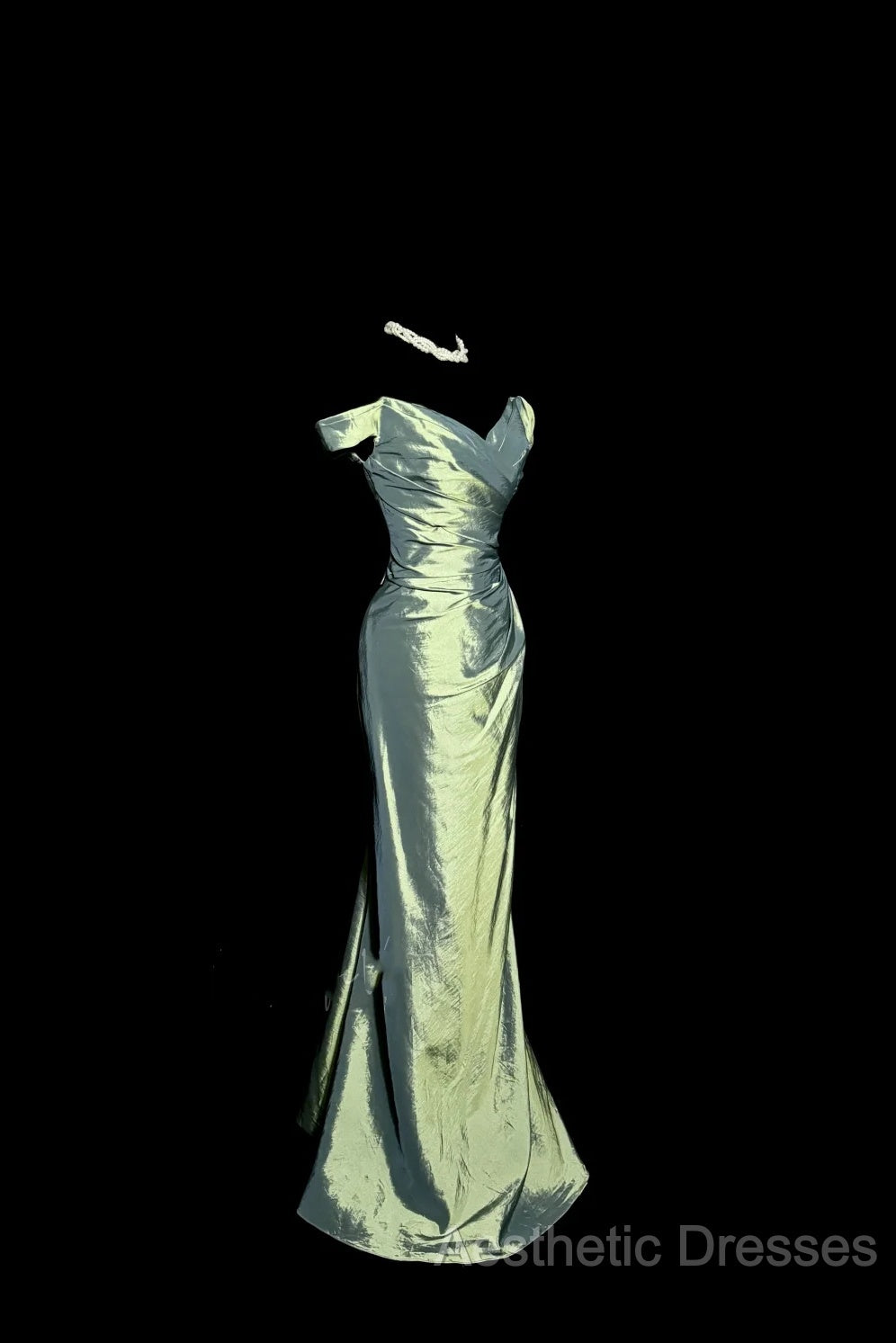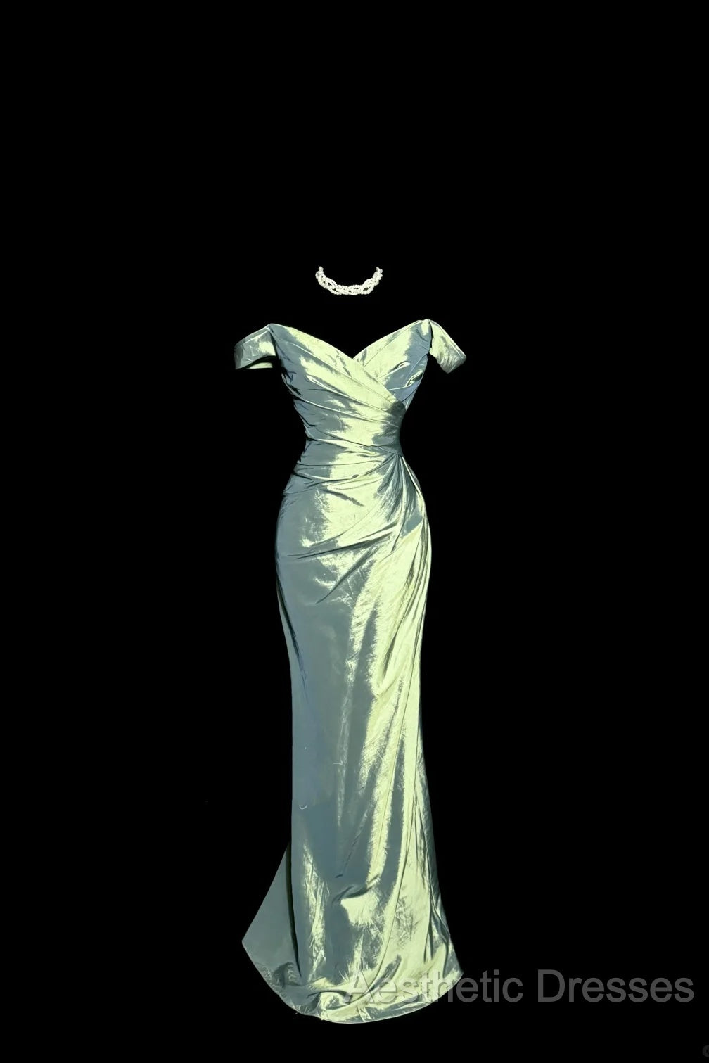 Vintage Mermaid Off The Shoulder Green Long Evening Prom Gown Fairy Evening Prom Dresses