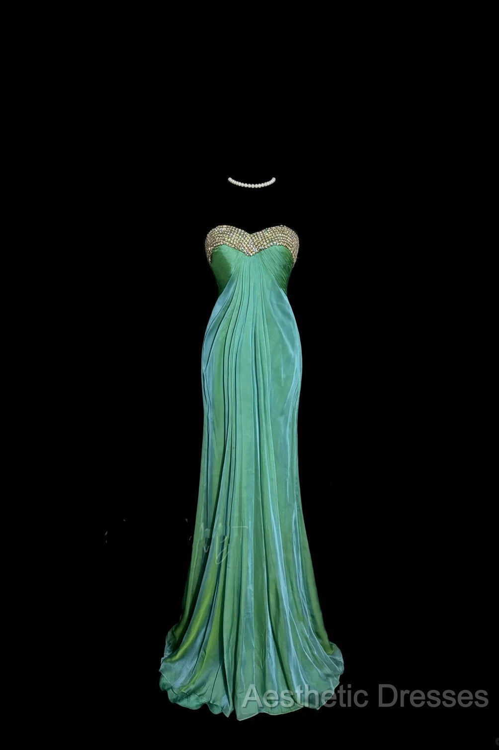 Vintage Mermaid Sweetheart Green Long Evening Prom Gown Fairy Evening Prom Dresses
