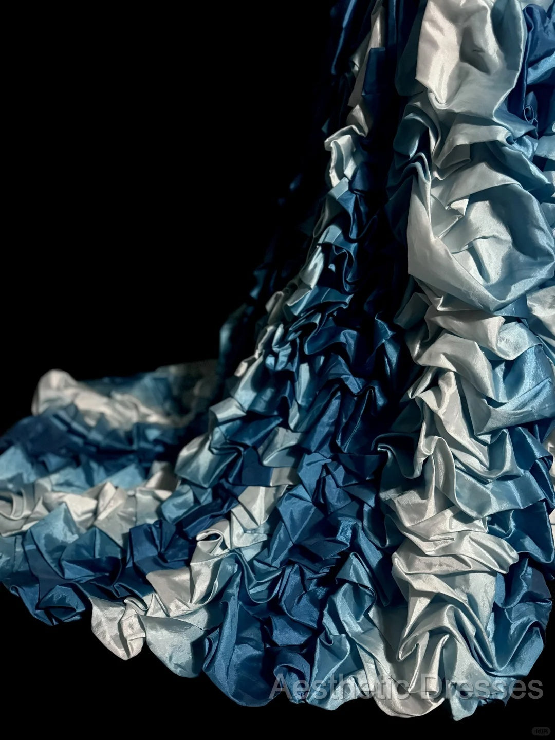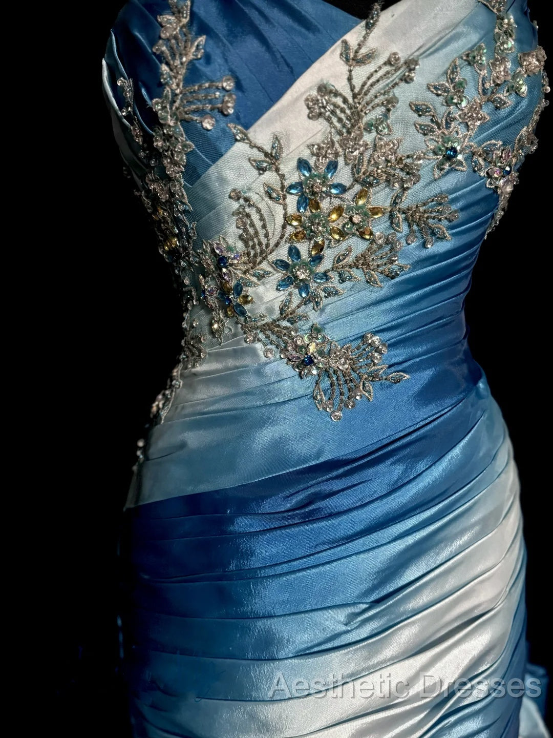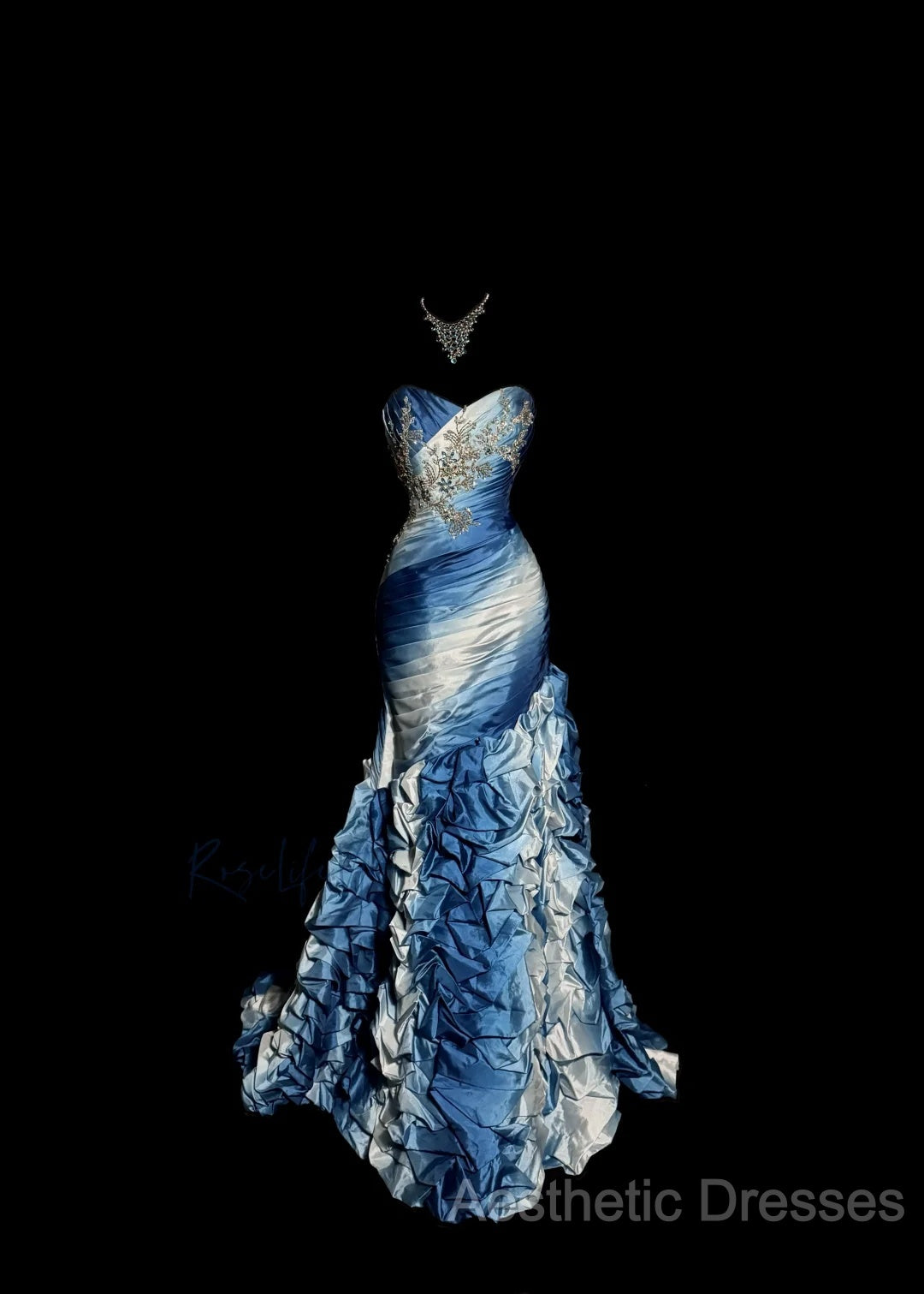 Vintage Mermaid Sweetheart Sleeveless Long Blue Evening Prom Gown Fairy Evening Prom Dresses
