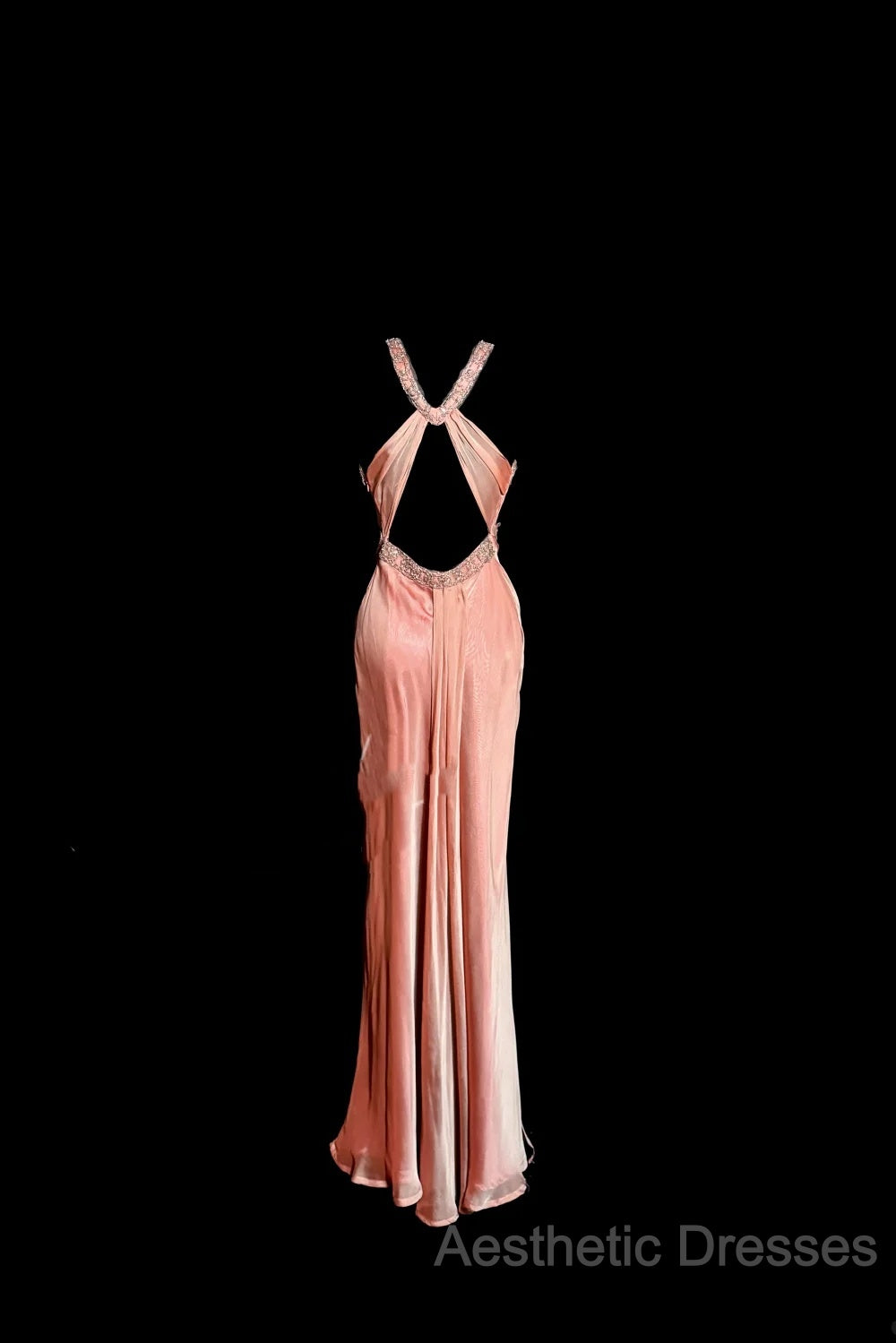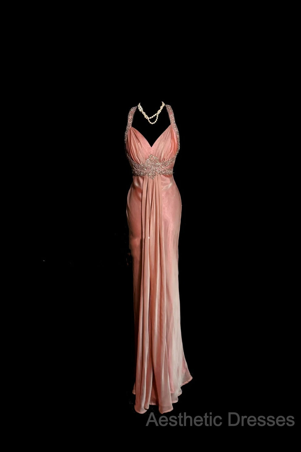 Vintage Mermaid V Neckline Pink Backless Long Evening Prom Gown Fairy Evening Prom Dresses