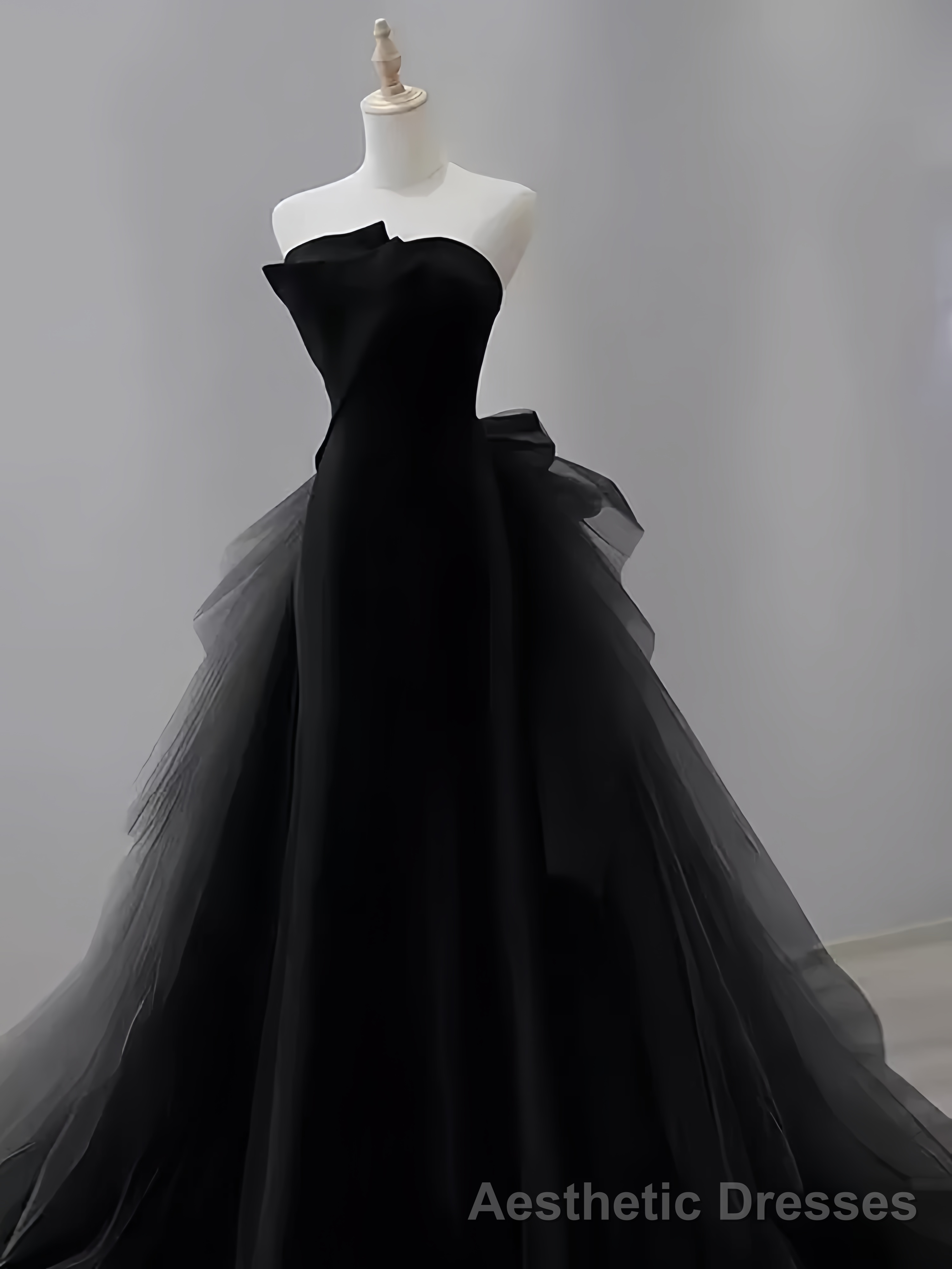 Vintage Sheath Strapless Satin Black Tulle Long Prom Dress Formal Dresses